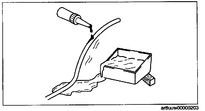 NOTE: Referring to the fluorescent dye instruction manual, mix the specified amount of dye into the engine oil or ATF (or transaxle/transmission oil).