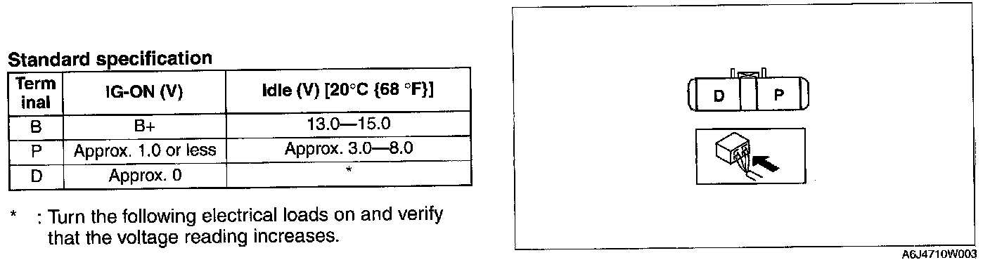 Current possible for power generation (differs according to load) [Conditions] ambient temperature 20 °C (68 °F), voltage 13.O - 15.0 V, engine hot