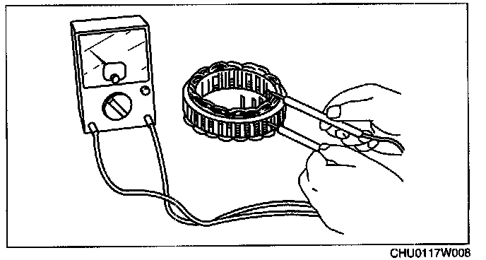 1. Inspect for continuity between the stator coil leads using a tester.