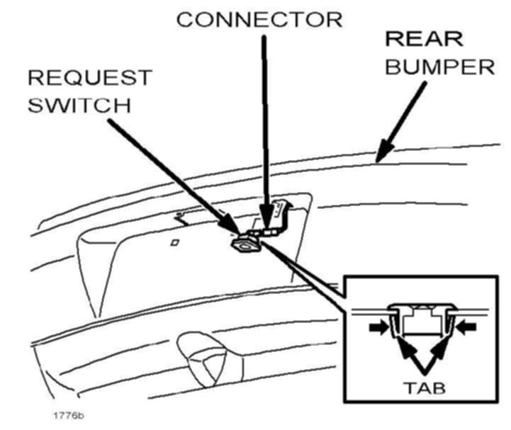 c. Detach request switch from the rear bumper by squeezing the tabs inward.