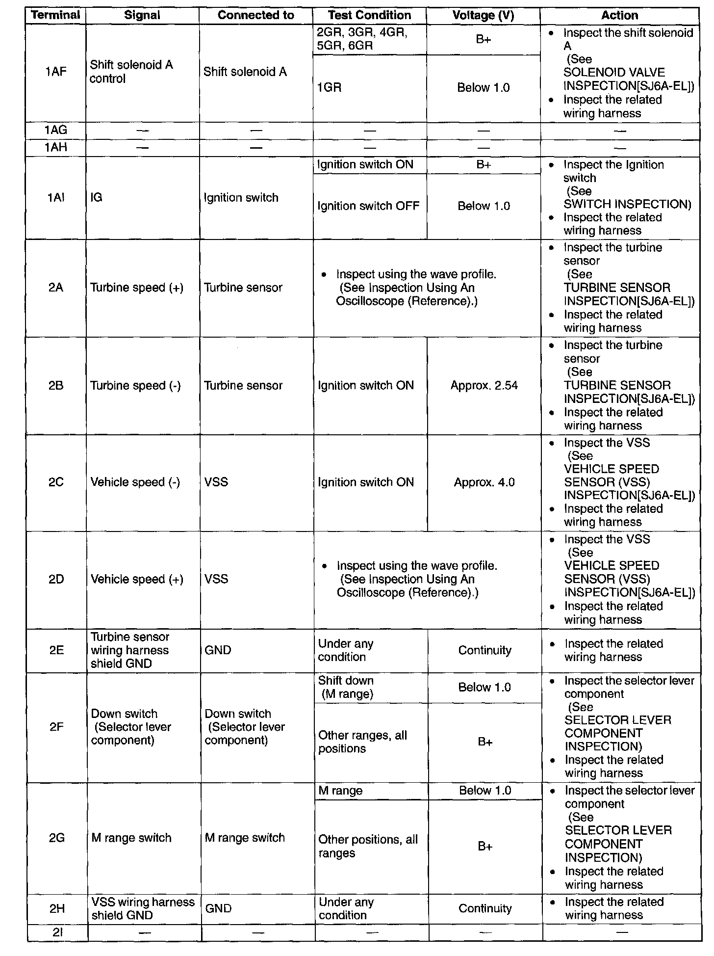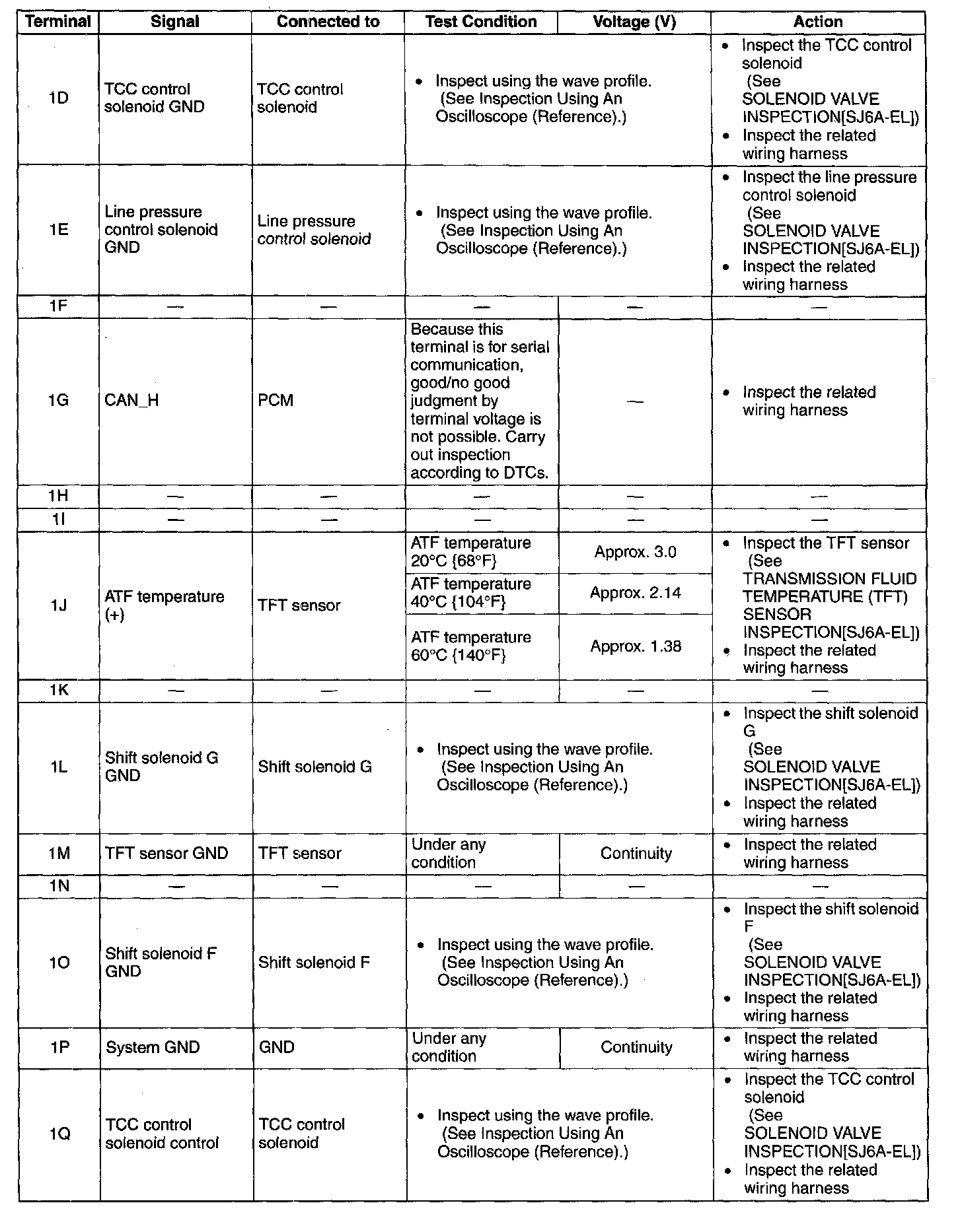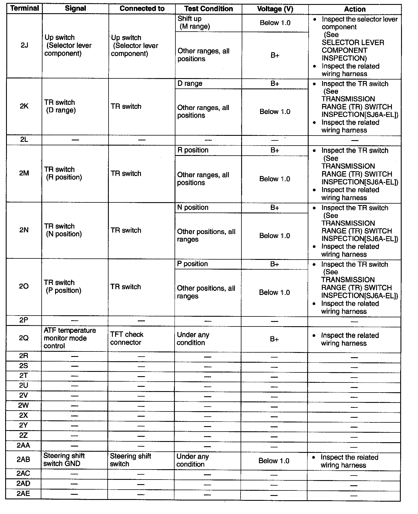 TCM INSPECTION [SJ6A-EL]Terminal Voltage Table (Reference)