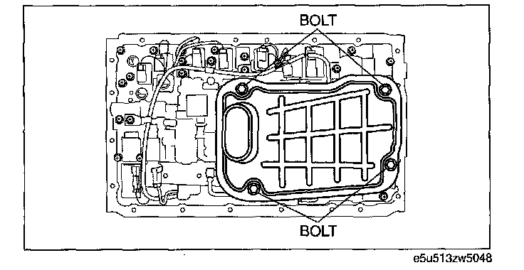 21. Install the oil strainer with the bolts to the control valve body component.