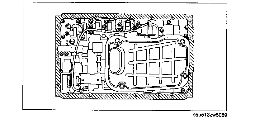 ^ Do not damage the fitting surface of the transmission case and the oil pan. Do not deform the oil pan.
