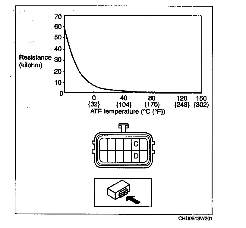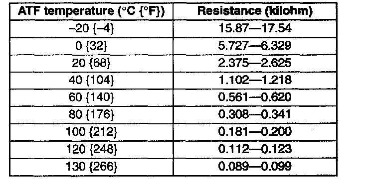 TRANSMISSION FLUID TEMPERATURE (TFT) SENSOR INSPECTION [RC4A-EL]Caution: