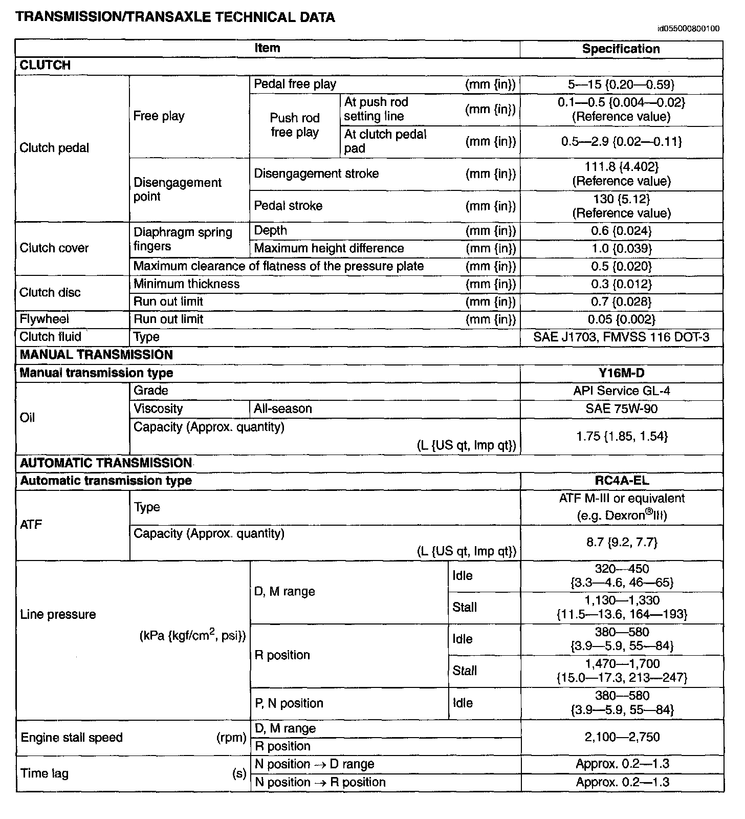 TRANSMISSION/TRANSAXLE TECHNICAL DATA