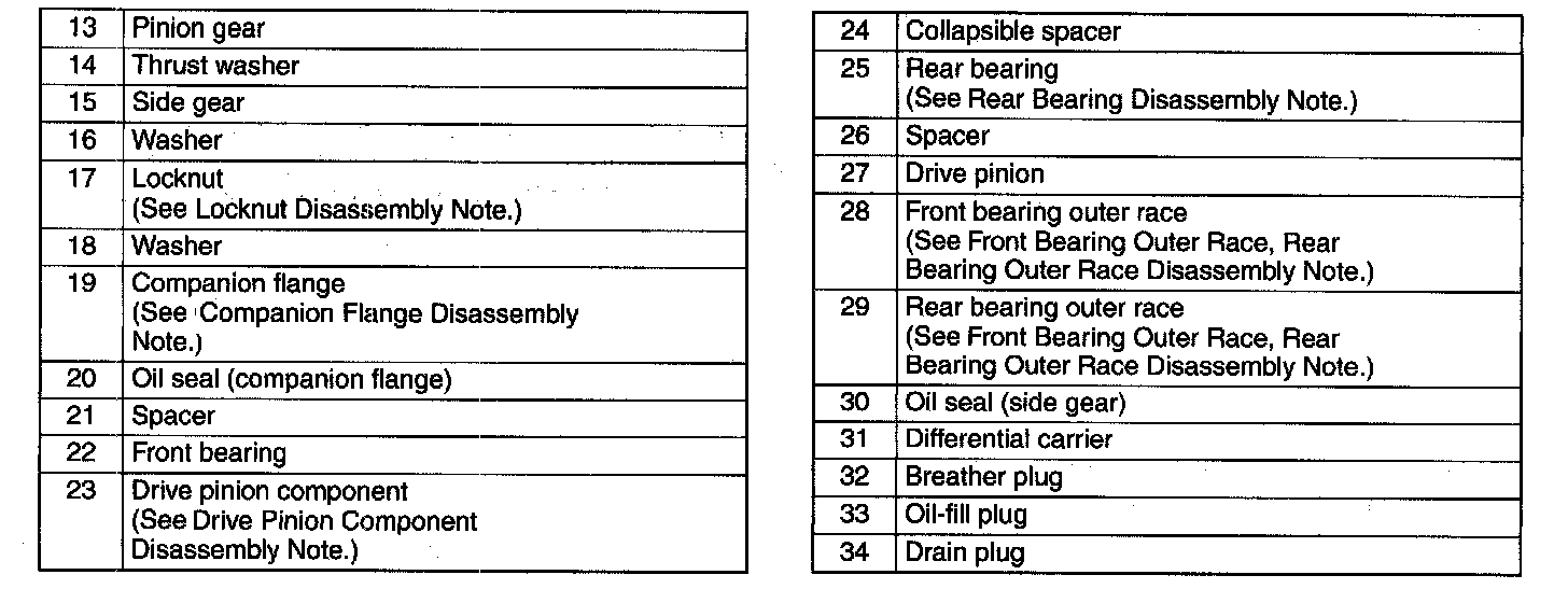 Differential Component Disassembly Note