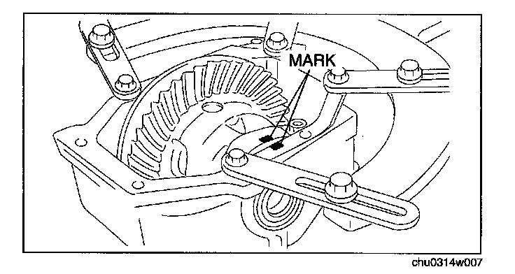 1. Mark the bearing cap and differential carrier for proper installation.
