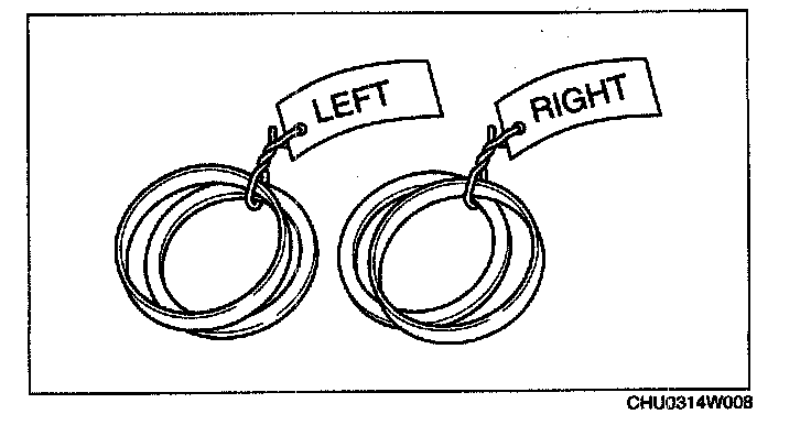2. Put left and right identification marks on the removed adjustment shims and side bearing outer races.