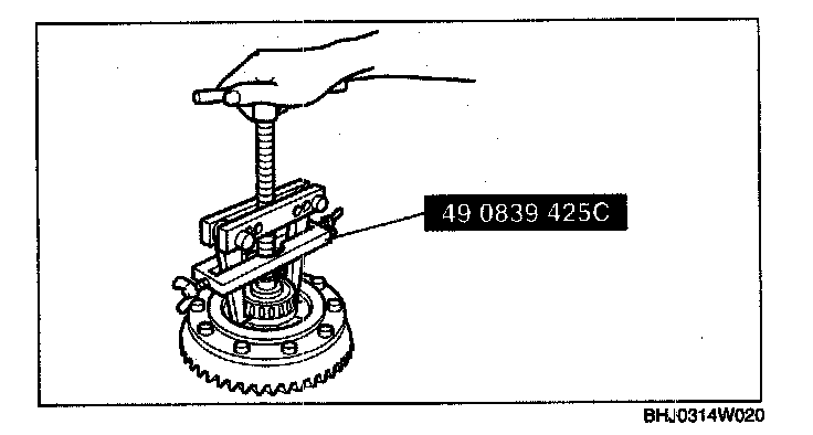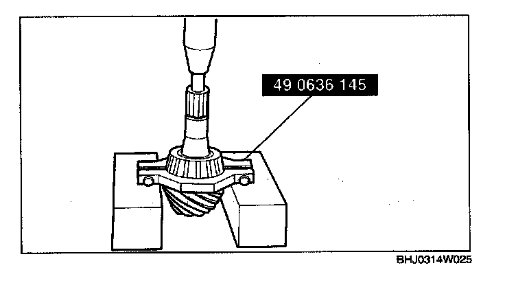 Caution: The drive pinion could be damaged if it falls off. Support the drive pinion with your hand when removing the rear bearing.