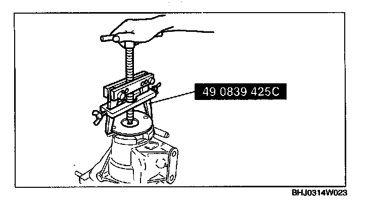 1. Remove the rear bearing using the SST and a press.
