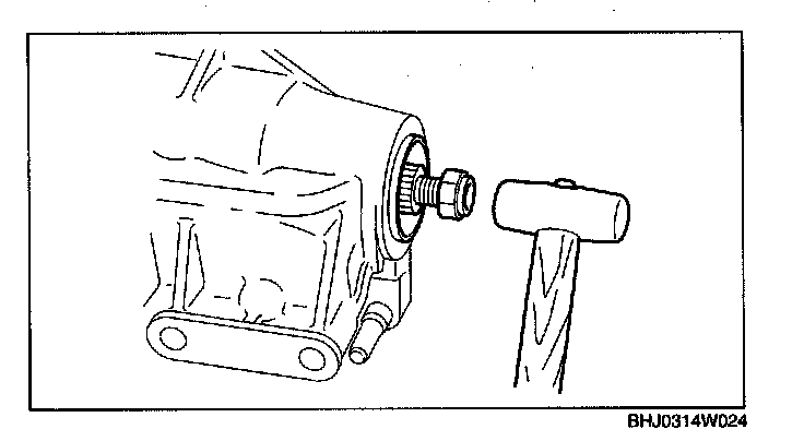 2. Remove the drive pinion component by tapping the locknut lightly using a plastic hammer.