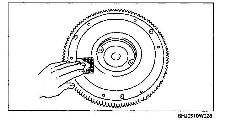 2. Inspect the surface that contacts the clutch disc for scratches, nicks, and discoloration.