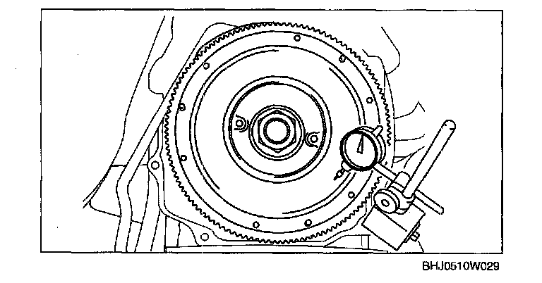 ^ Inspect the runout of the surface that contacts the clutch disc with the flywheel installed to the eccentric shaft.