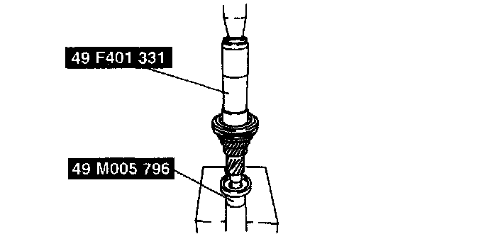 2. Select the new thrust washer from the table so that the clearance measured in Step 1 is within specification, and install it in the countershaft gear with the identification mark facing up.