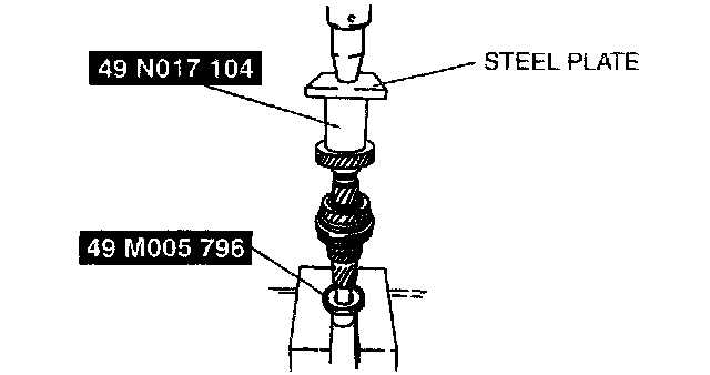3. Carefully install the clutch hub component (3rd/ 4th) using the SSTs and a press.