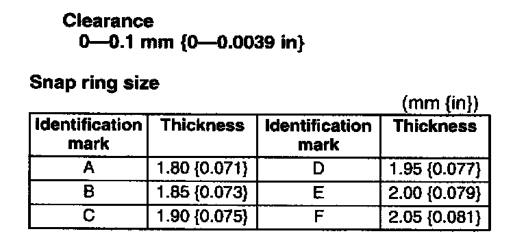 2. Select the new snap ring from the table so that the clearance measured in Step 1 is within specification, and install it in the countershaft gear.
