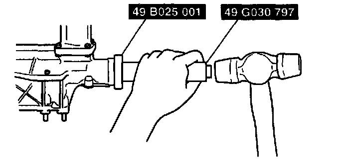 1. Install a new oil seal in the extension housing using the SSTs and a hammer.