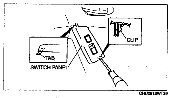 3. Remove the switch panel from the front door trim keeping the tab from catching.