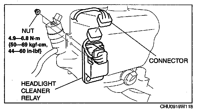 HEADLIGHT CLEANER RELAY REMOVAL/INSTALLATION1. Disconnect the negative battery cable.