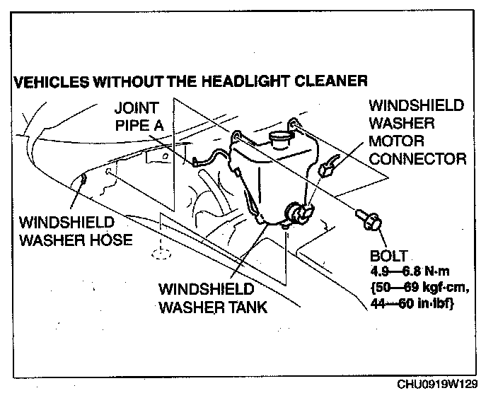 6. Disconnect the headlight cleaner hose from joint pipe B. (Vehicles with the headlight cleaner)
