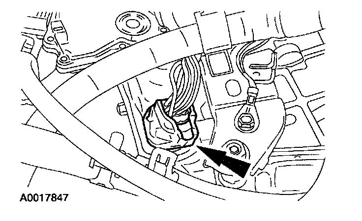 12. Install the bolt and connect the transaxle control harness to the bracket.