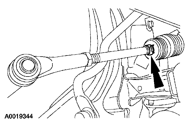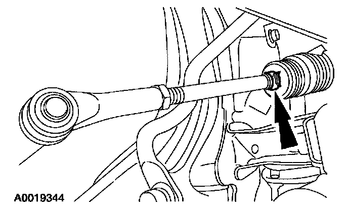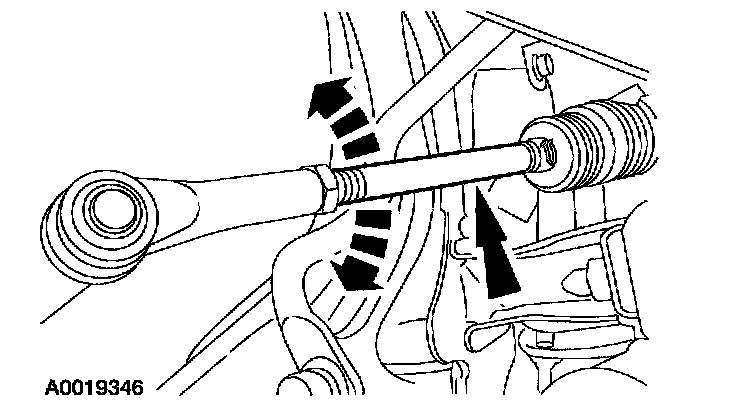 Note: Do not allow the steering gear bellows to twist when the front wheel spindle tie rod is rotated.