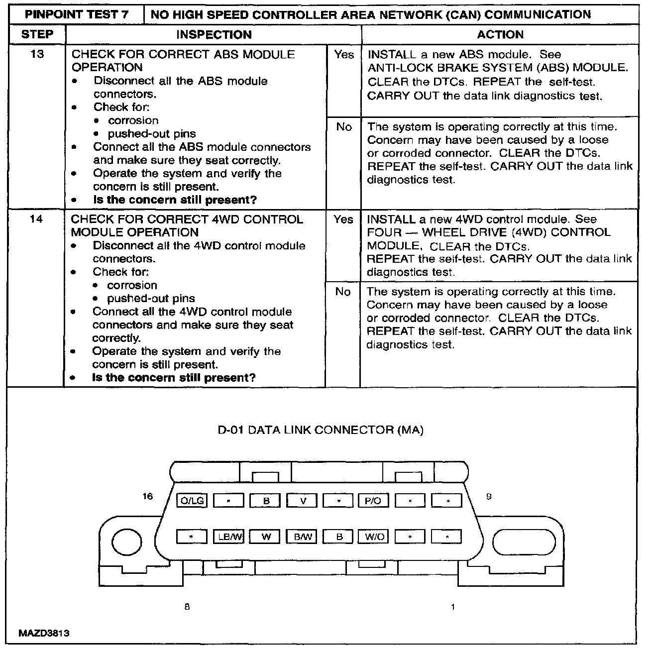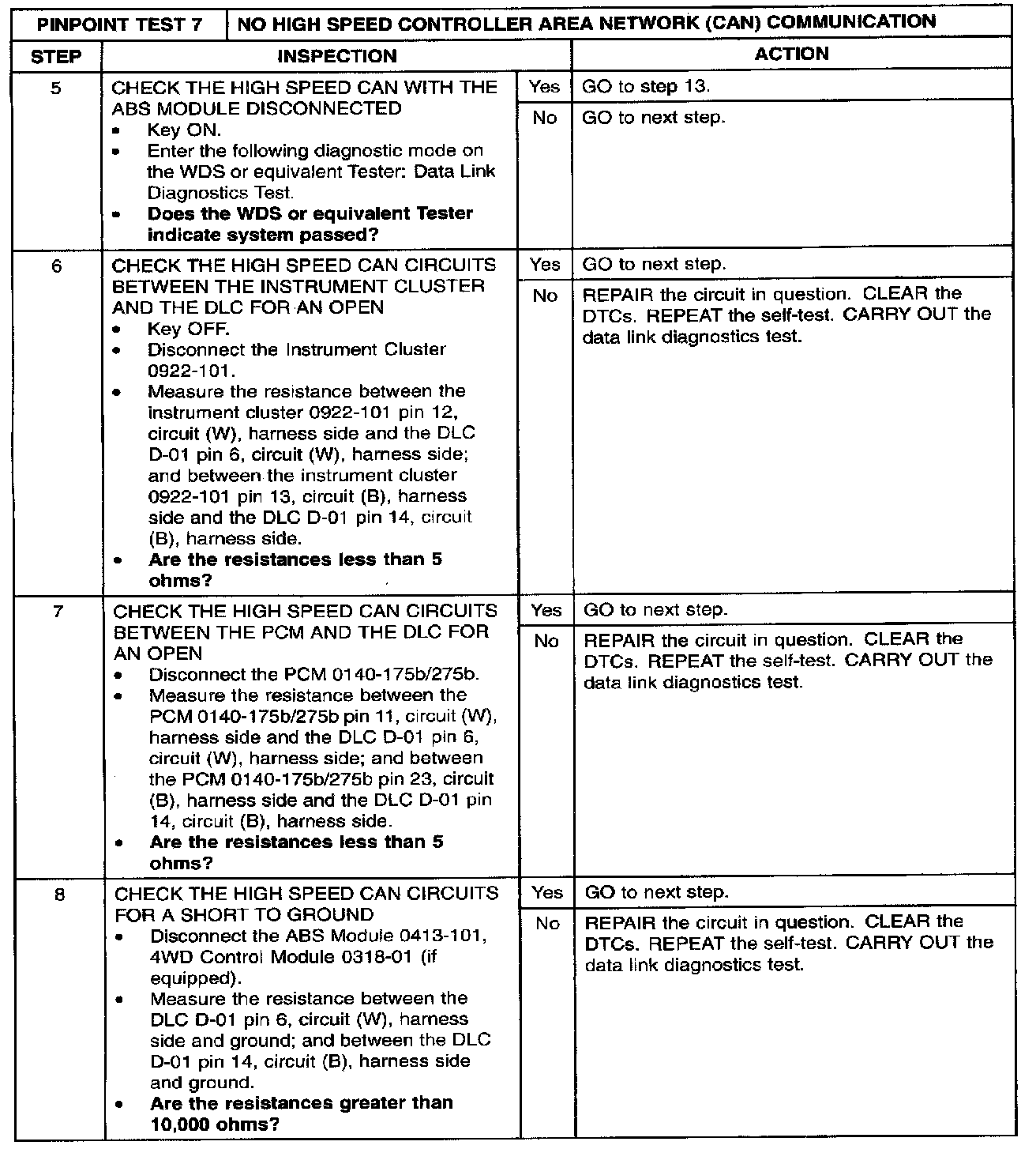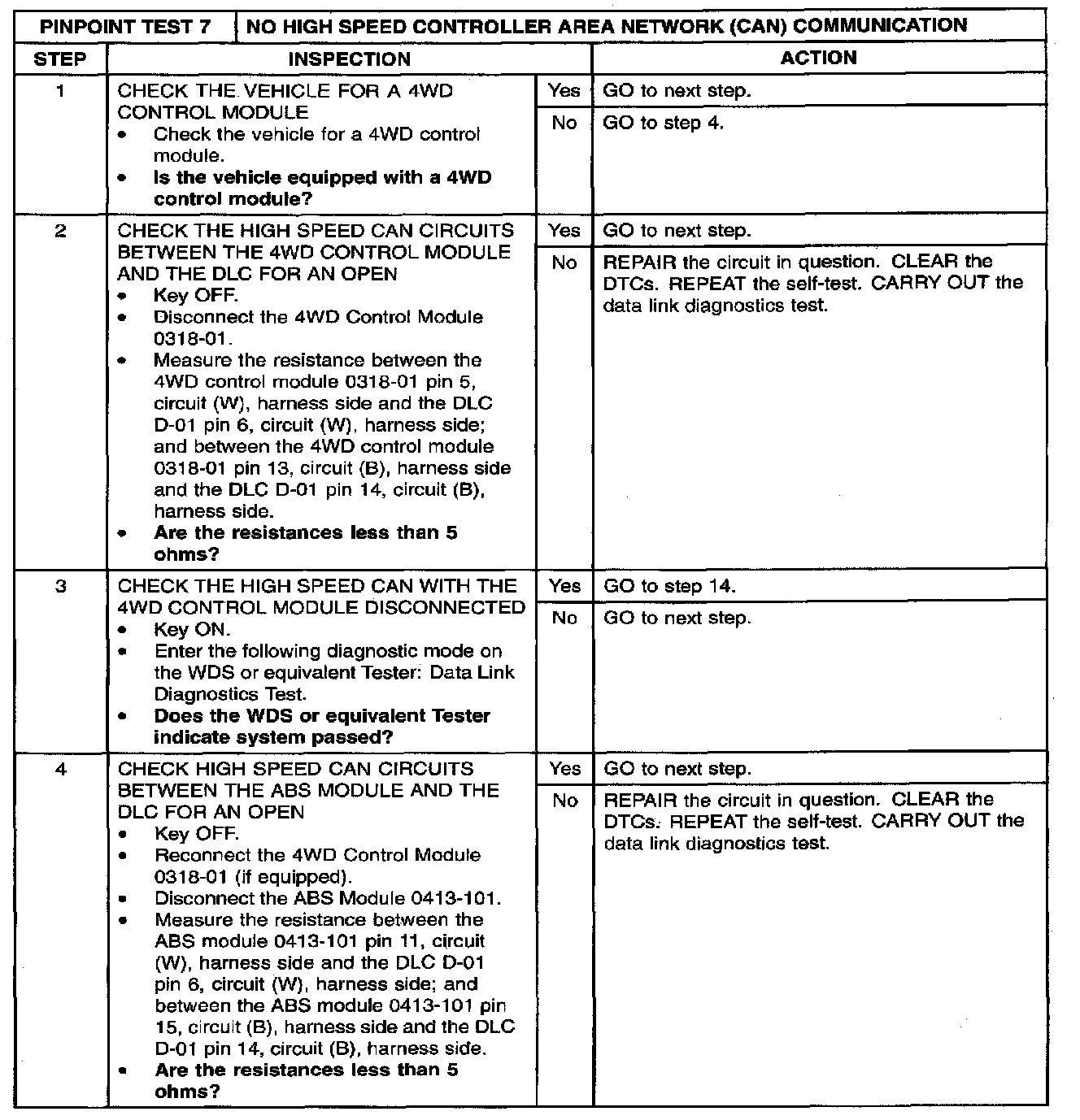 PINPOINT TEST 7: NO HIGH SPEED CONTROLLER AREA NETWORK (CAN) COMMUNICATIONStep 1 - 4: