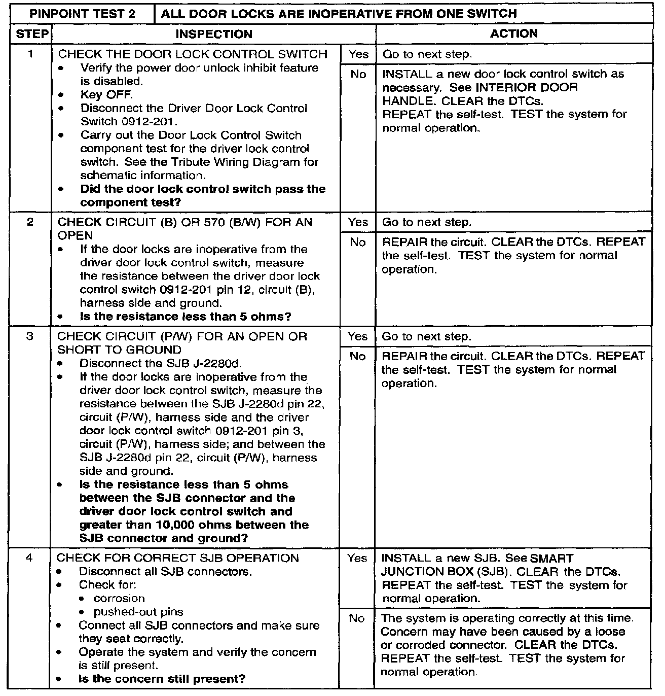 PINPOINT TEST 2: ALL DOOR LOCKS ARE INOPERATIVE FROM ONE SWITCHStep 1 - 4: