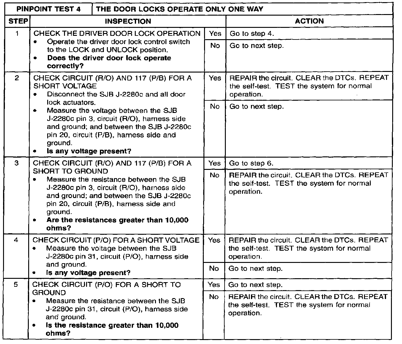 PINPOINT TEST 4: THE DOOR LOCKS OPERATE ONLY ONE WAYStep 1 - 5: