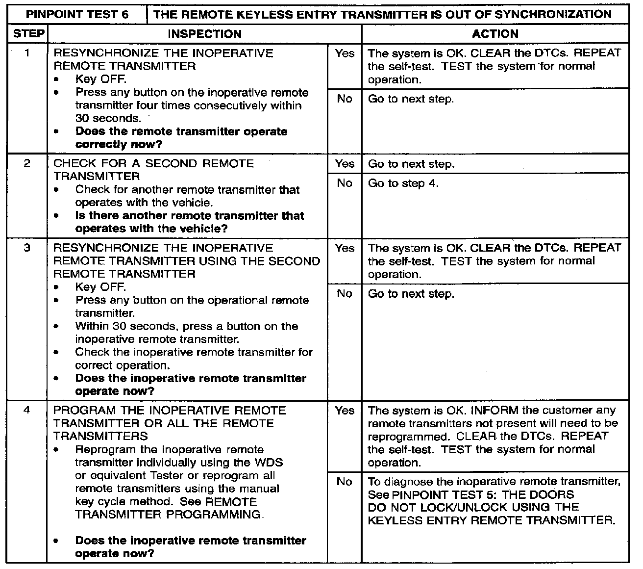 PINPOINT TEST 6: REMOTE KEYLESS ENTRY TRANSMITTER OUT OF SYNCHRONIZATIONStep 1 - 4: