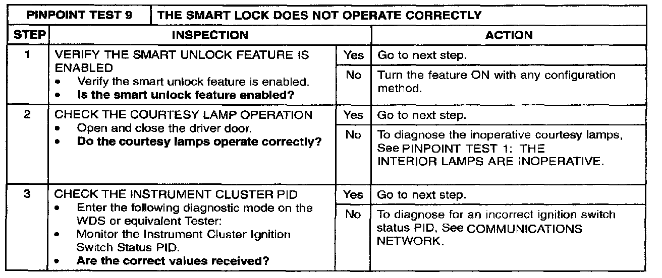 PINPOINT TEST 9: THE SMART LOCK DOES NOT OPERATE CORRECTLYStep 1 - 3: