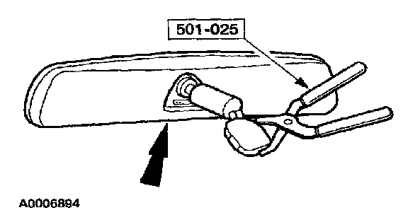 1. Place the interior rear view mirror on the windshield bracket. Using the special tool, press the mirror in place until fully seated.