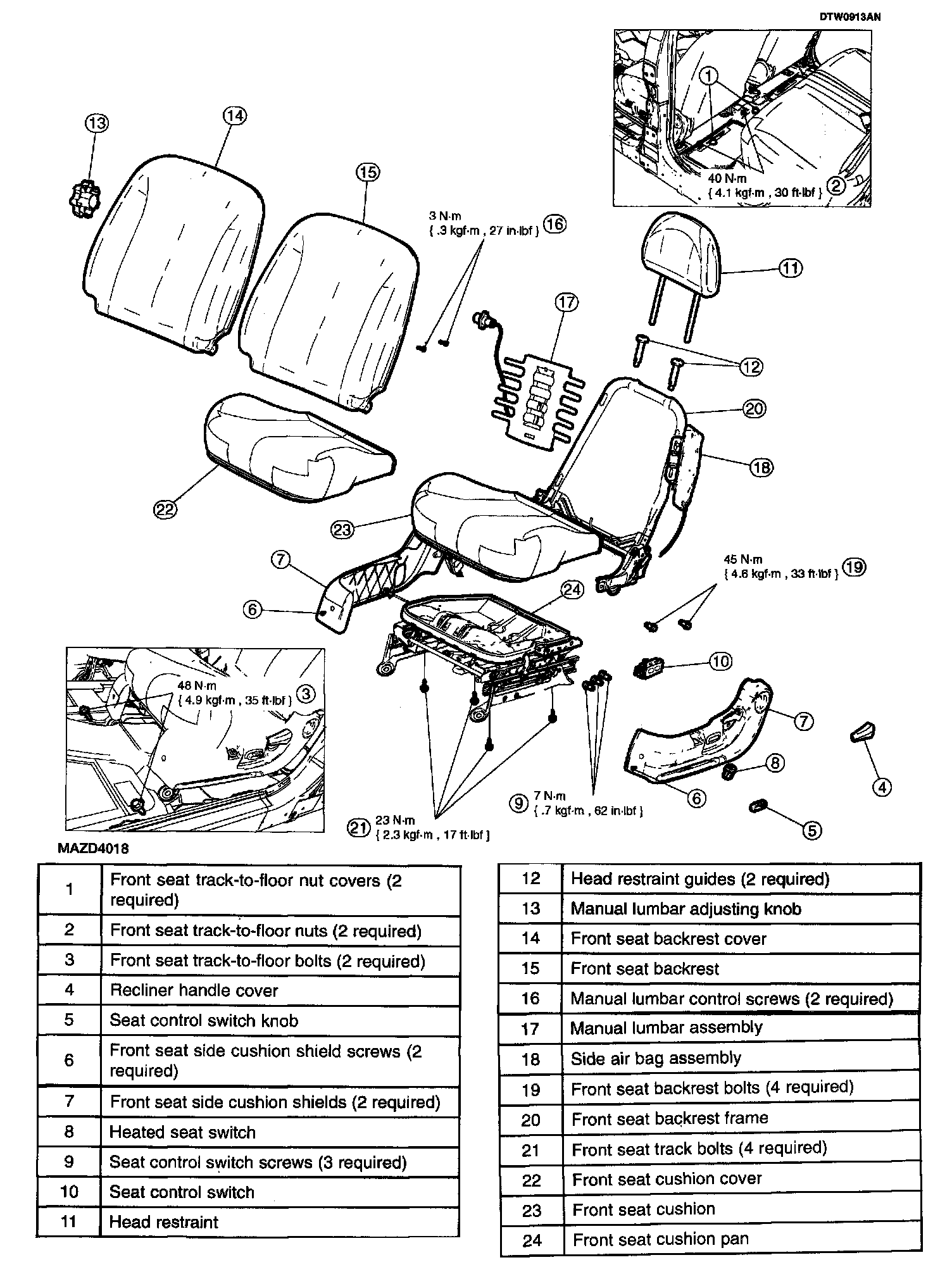 NOTE: If a side air bag deployment took place, a new seatback pad, trim cover, and side air bag module must be installed. A new seatback frame should be installed if necessary.