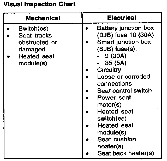 4. If the cause is not visually evident, verify that symptom and GO to SYMPTOM TROUBLESHOOTING CHART - POWER SEAT. Symptom Chart