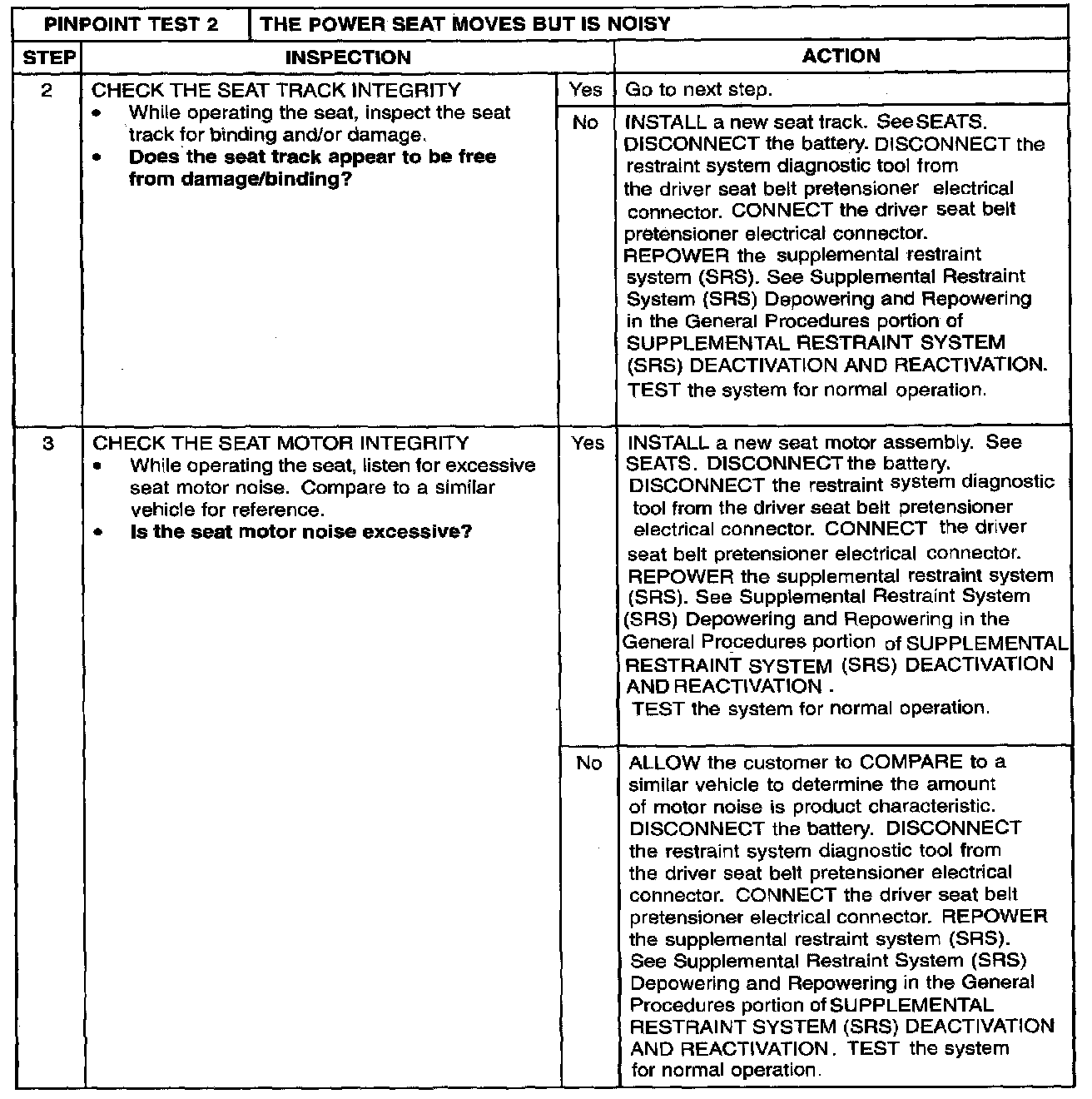 PINPOINT TEST 2: THE POWER SEAT MOVES BUT IS NOISYStep 1:
