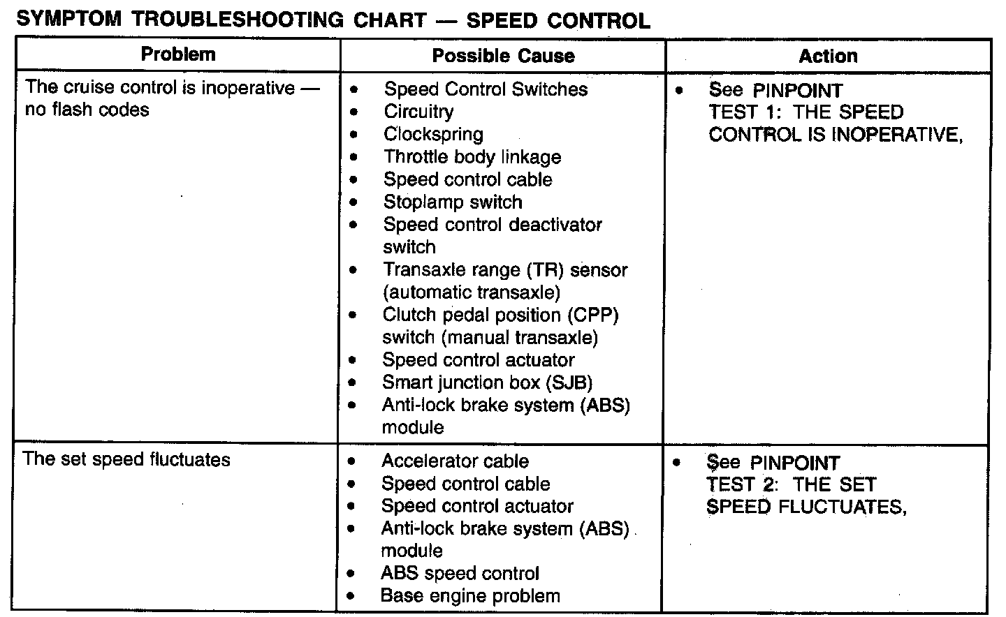 Symptom Trouble Shooting Chart - Speed Control Part 1: