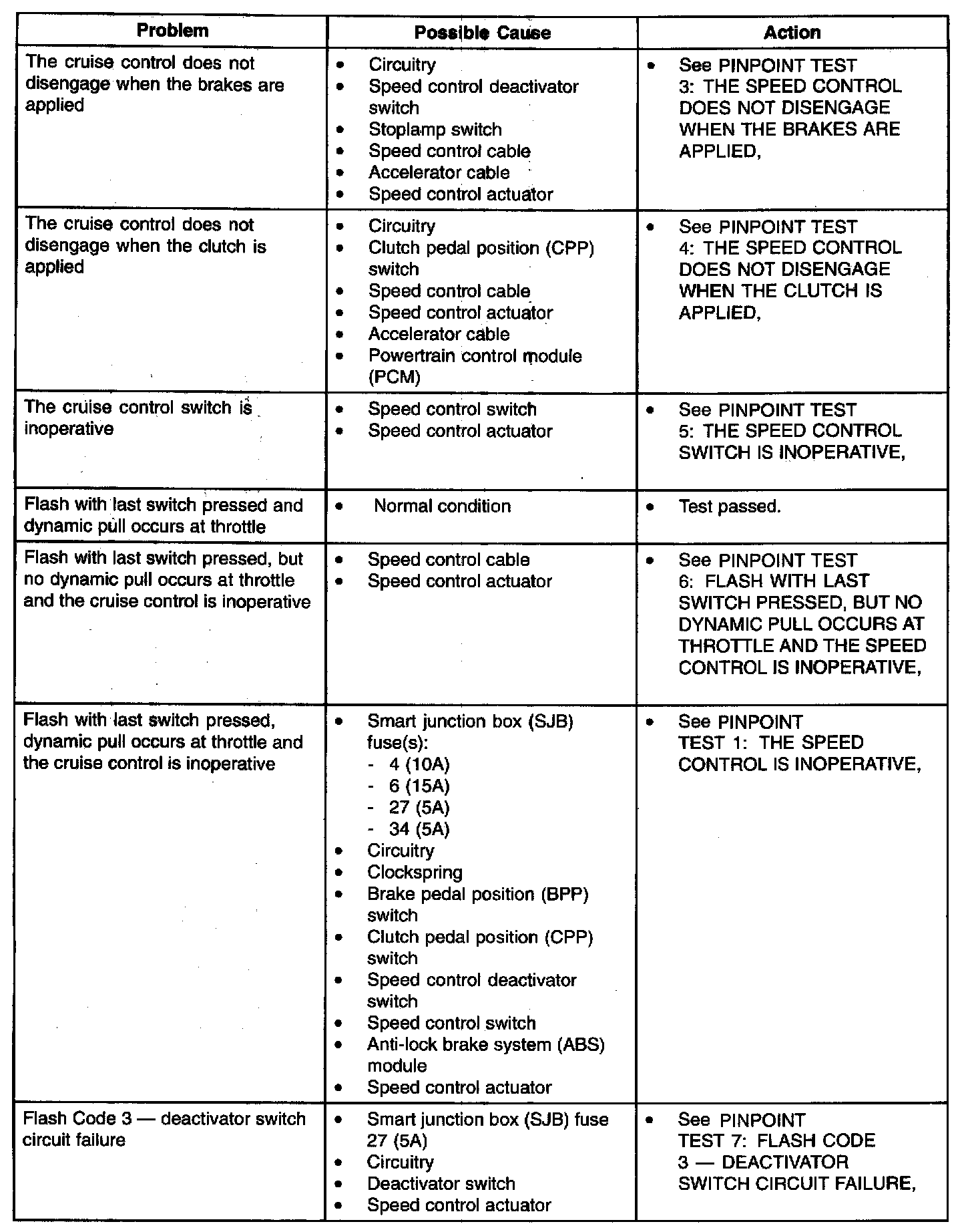 Symptom Trouble Shooting Chart - Speed Control Part 3: