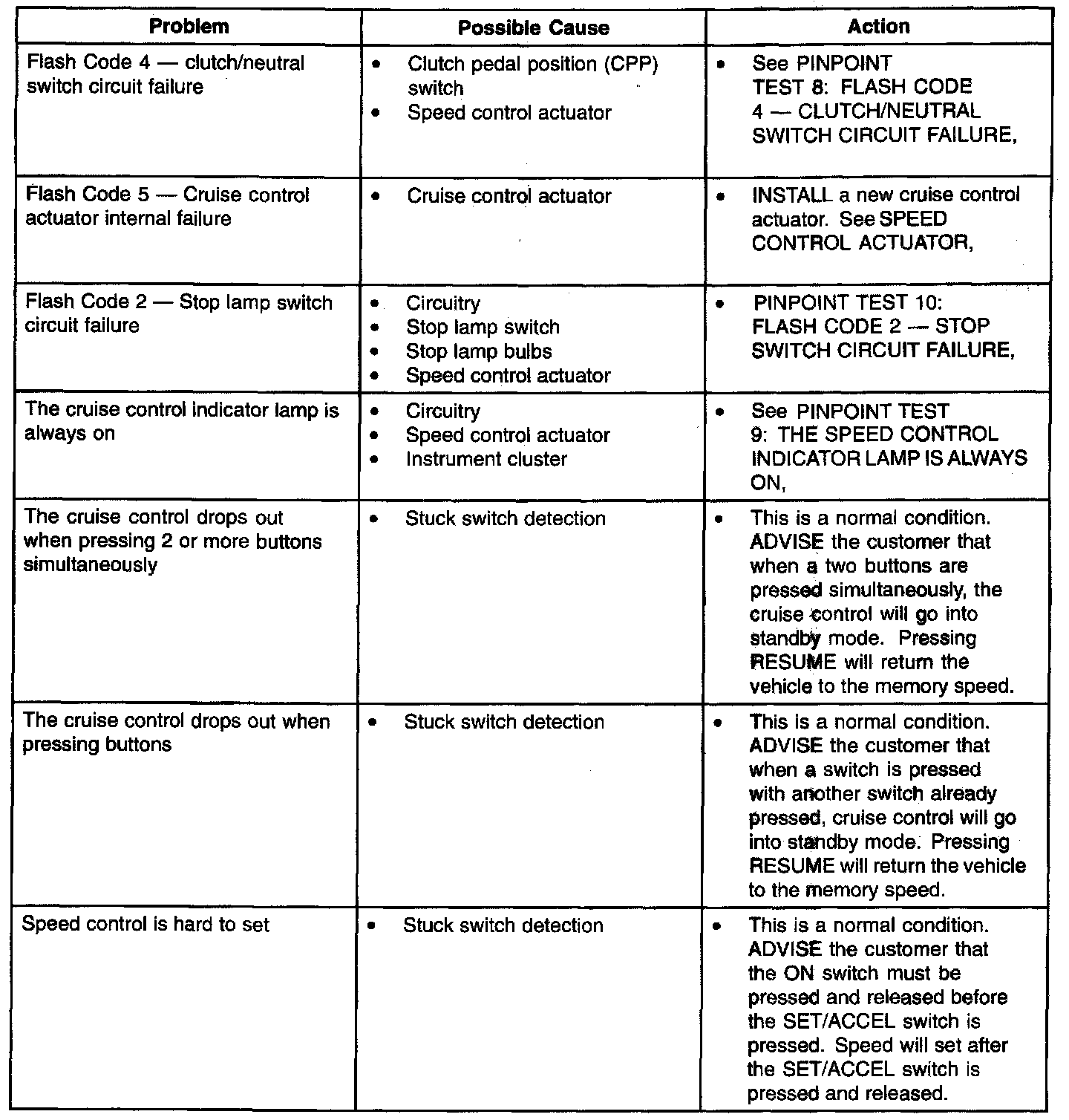 Symptom Trouble Shooting Chart - Speed Control Part 2: