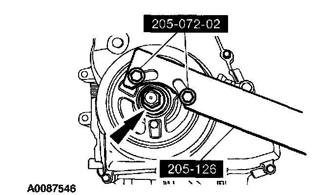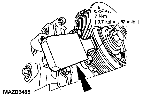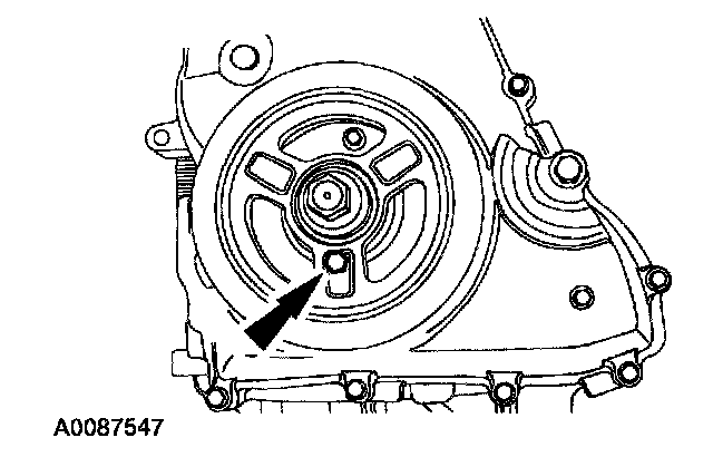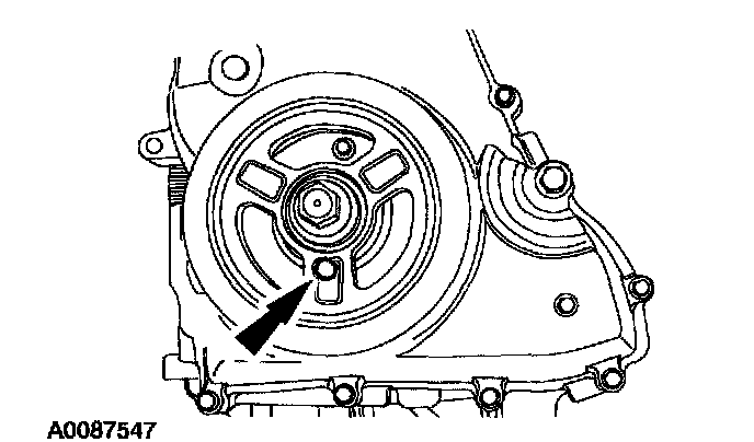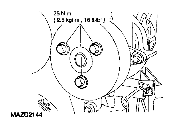 ^ Rotate the pulley as necessary to align the bolt holes.