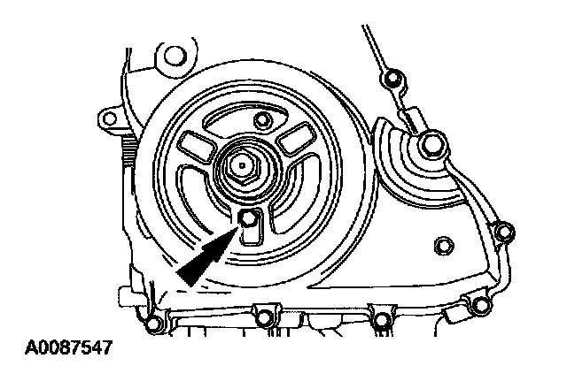47. Using the 6 mm (0.23 inch) x 18 mm (0.7 inch) bolt, check the position of the crankshaft pulley.