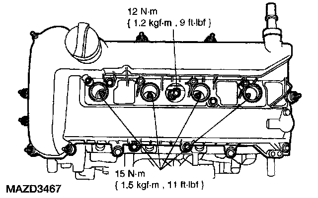 ^ The valve cover must be secured within four minutes of silicone gasket application. If the valve cover is not secured within four minutes, the sealant must be removed and the sealing area cleaned with metal surface cleaner.