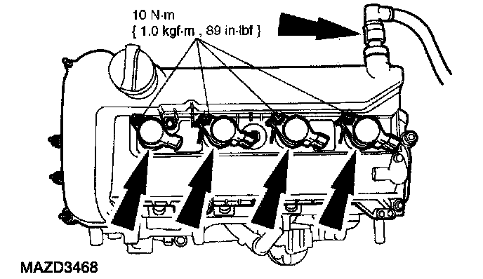 ^ Remove and discard the fuel injector O-rings.