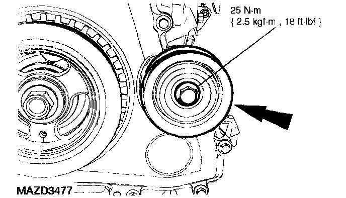 ^ Failure to hold the crankshaft pulley in place during bolt tightening can cause damage to the engine front cover.