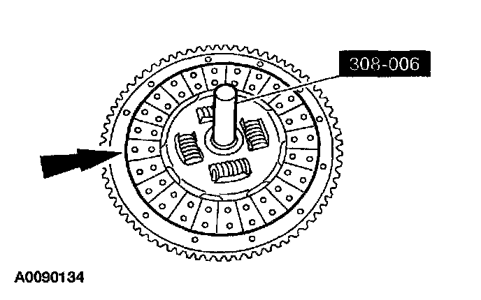 105. Using the special tool, position the clutch disc on the flywheel.
