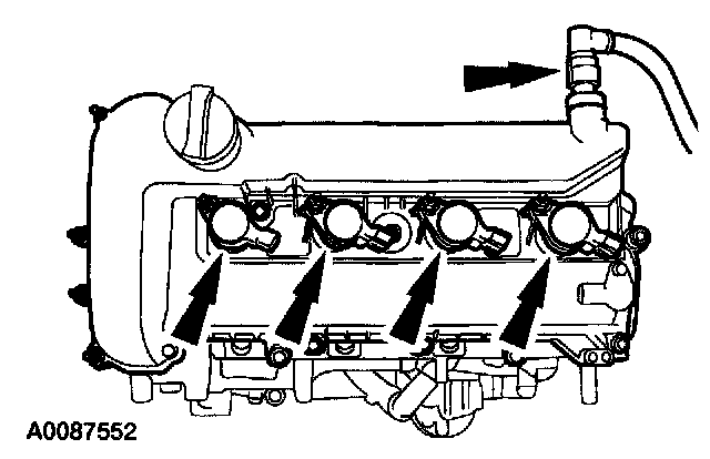 44. Remove the crankcase vent tube and the coil-on-plugs.