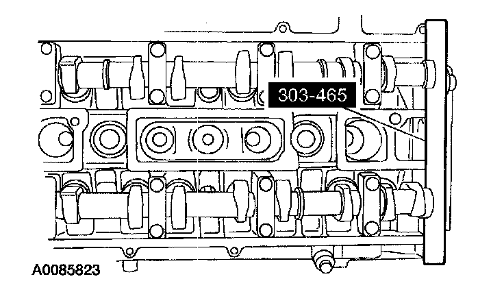 ^ The special tool 303-465 is for camshaft alignment only. Using this tool to prevent engine rotation can result in engine damage.