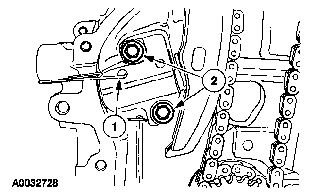 2. Remove the bolts and timing chain tensioner.