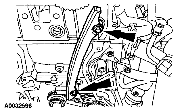 59. Remove the bolts and the LH timing chain guide.