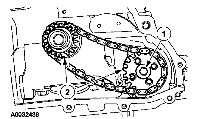 ^ The oil pump chain sprocket must be held in place.