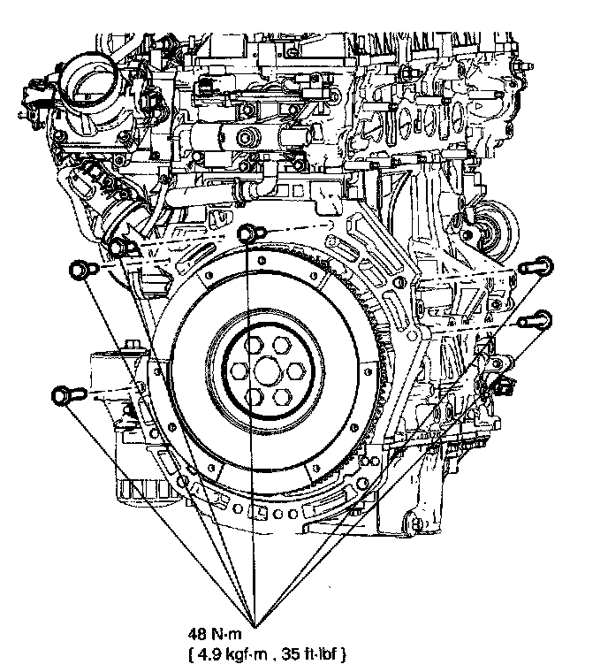 1. Using the engine crane and spreader bar, position the engine and transaxle together. Install the six transaxle-to-engine bolts.